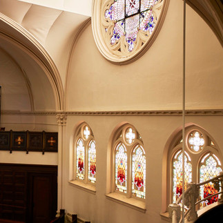 One of the remarkable houses of worship built along this acclaimed avenue is Collingwood Presbyterian, known simply by its parishioners as "Collingwood." Constructed in 1904 for $90,000, this church had its first service on January 4, 1905. The sanctuary's unique gothic-style exterior features rusticated sandstone stonework and great rose windows. The ornate Romanesque interior is based on the Byzantine equal-armed cross. It features arched vaults and pendentives supporting a domed ceiling. The ceiling and walls are covered in lightweight 240ct Belgian Linen—used because it puts less strain on the roof or structure.